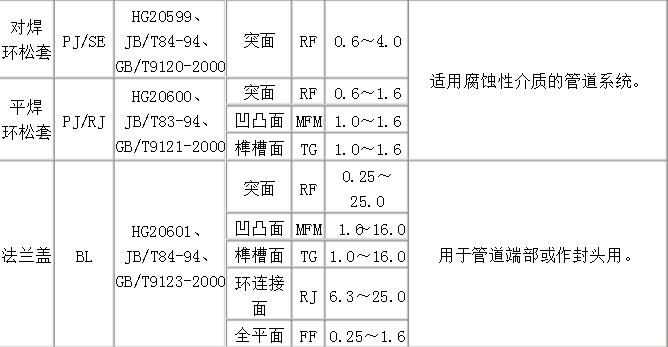 突面(RF)、凹凸面(MFM)、榫槽面(TG)、环连接面(RJ)。