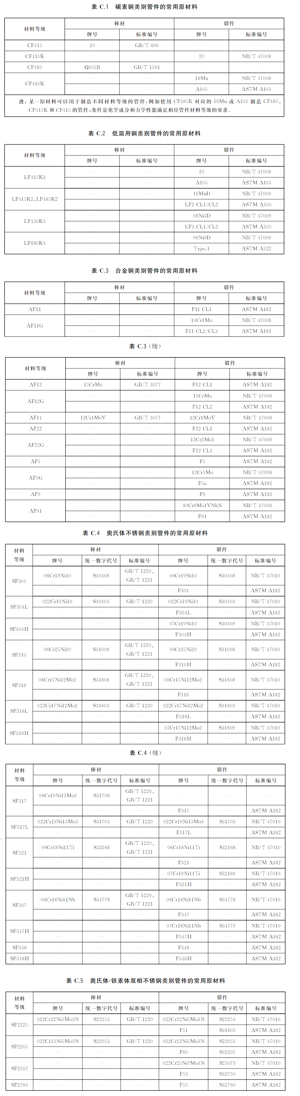 GB/T14383-2021管道配件的原材料对应表图