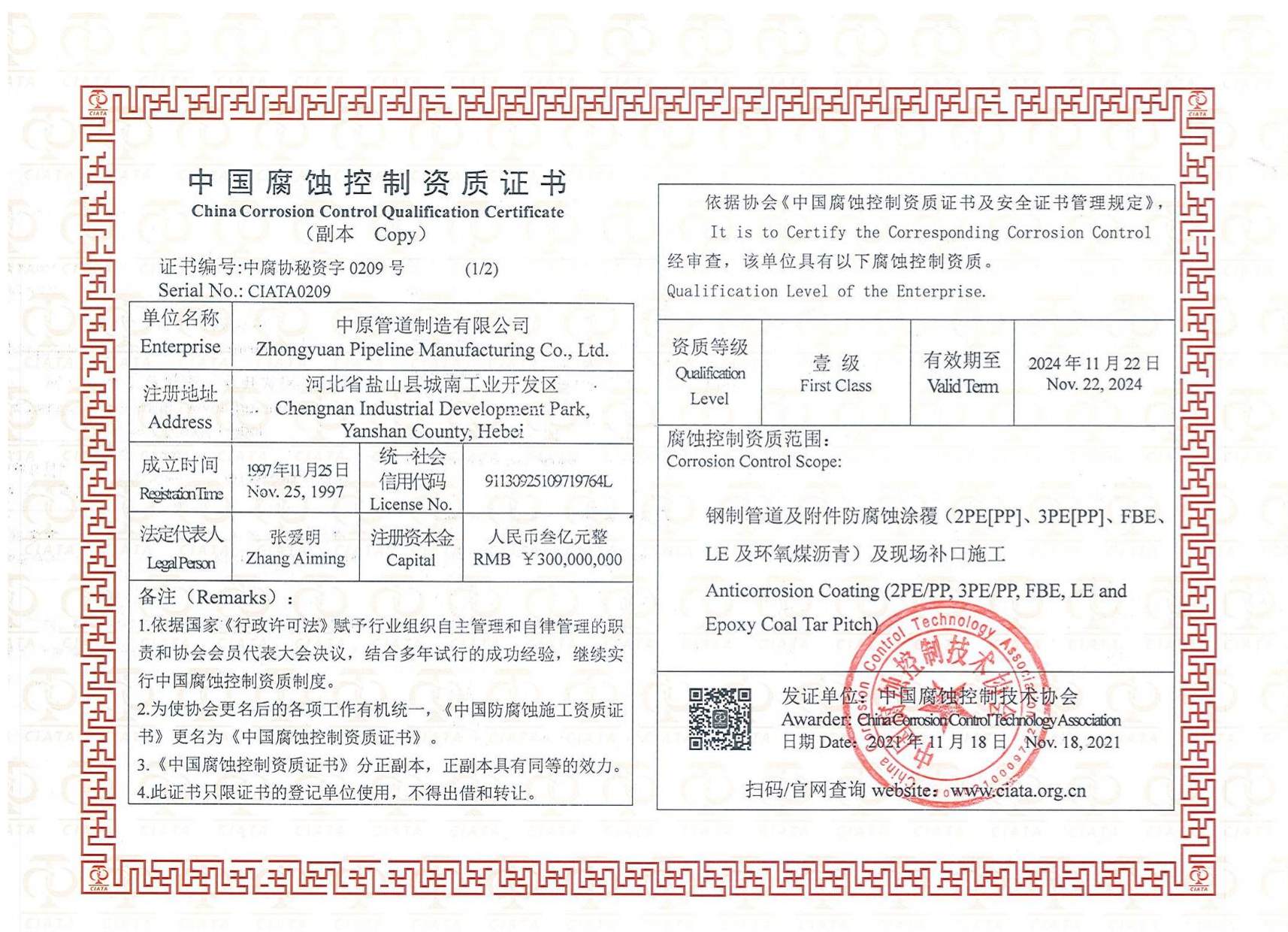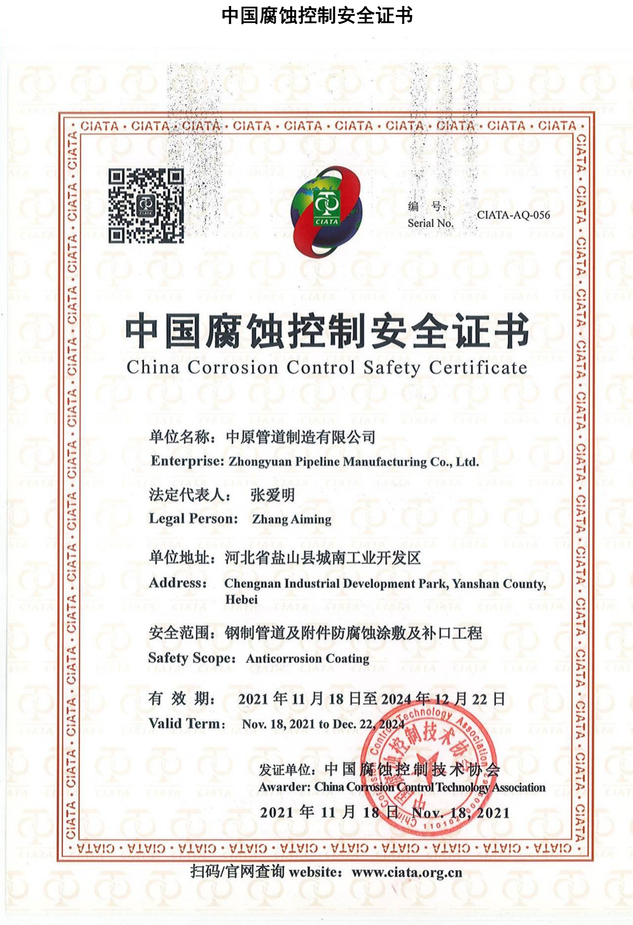 公司自2000年以来先后通过ISO9001国际质量管理体系认证,ISO14001国际环境管理体系认证,GB/T28001职业健康安全管理体系认证和中国石油天然气集团公司(HSE)健康、安全与环境管理体系认证,美国石油学会API Spec Q1体系认证、API Spec 5L国产麻豆精品一区二区在线小说认证,欧盟锅炉压力容器安全认证(PED),并获得特种设备制造许可证(压力管道)等体系认证和许可证书,2011年5月成为中国石油天然气集团公司一级物资供应商,2012年成为中国国电集团公司和中国华电集团公司集团级合格供应商,2014年3月成为中国石油化工集团公司合格供应商,2015年12月公司荣获中国防腐蚀施工壹级资质证书和中国防腐蚀安全证书,2017年3月“世兴牌给水用环氧粉末复合钢管”和“世兴牌给水用液体环氧涂料复合钢管”均获得河北省国产涉及饮用水卫生安全国产麻豆精品一区二区在线小说卫生许可批件。