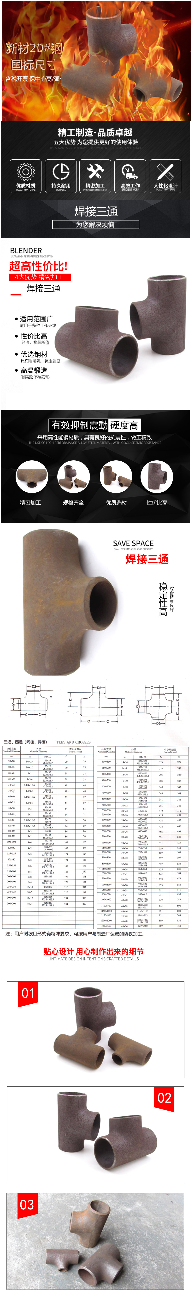 等径三通(等徑三通)材质为:ASTM A234 GR. WPB,标准为:NSI B16.9