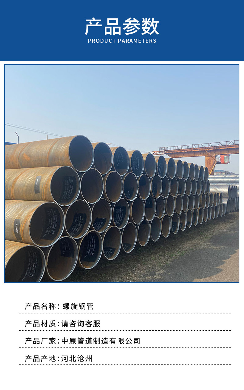 小口径螺旋钢管主要应用于自来水工程、石化工业、化学工业、电力工业、农业灌溉、城市建设